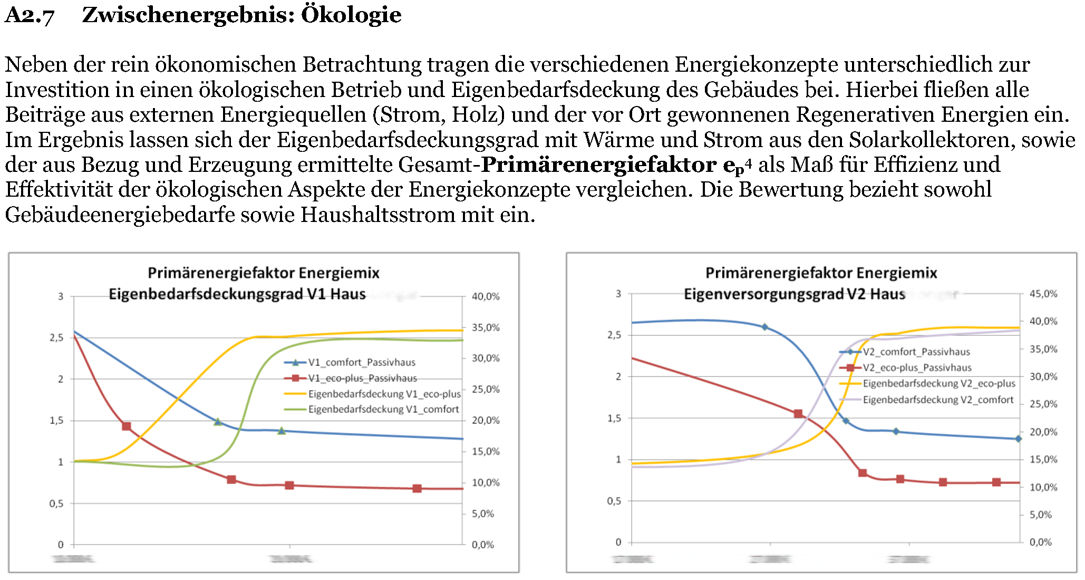 Alle Varianten wurden in Bezug auf Investi- tion, Ökologie und langfristge Nutzungskos- ten miteinander verglichen. Je nach Ent- wurf, Lage und Energiekonzept wurde so indiviuell die optimale Investition und das beste Gesamtkonzept ermittelt. Die Entwür- fe wurden hierzu in je zwei Energiekonzep- ten entwickelt: