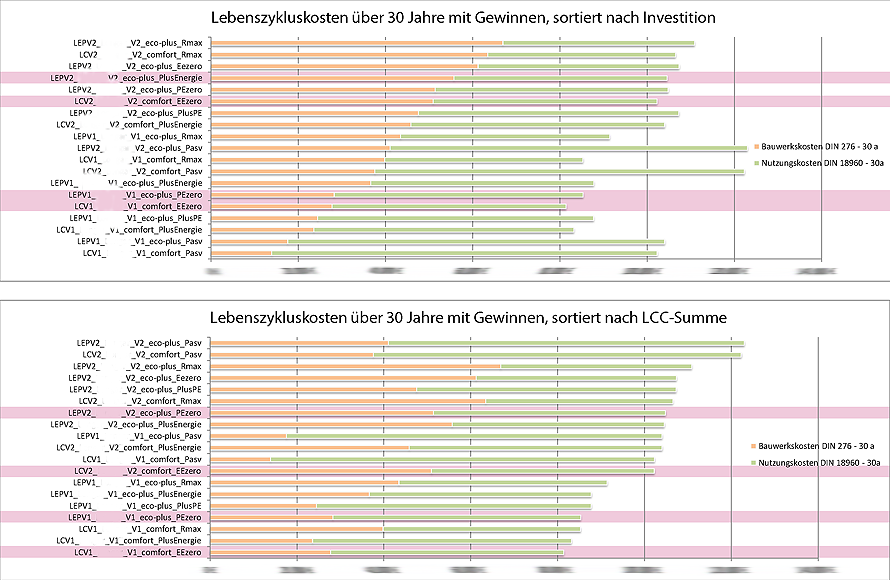 Je Grundvariante wurden verschiedene nullEnergie-Erzeugungskonzepte simuliert: